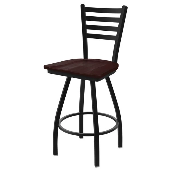 This Black Wrinkle XL Jackie swivel bar stool has a contemporary design and provides superb back support for exceptional comfort. The XL stool line from Holland Bar Stool features a larger base providing superior stability and the seat is 2" wider and 1" deeper than standard seats.The frame is made from commercial quality 16 gauge, 1 1/4 inch tube steel with solid mig welded joints to guarantee strength and durability. The powder coated finish resists chips and scratches and ensures a long-lasting, rich appearance. The wood seats are 1 1/4 inch solid hardwood (oak or maple) and are dished for amazing posterior comfort, making sitting for minutes or hours a pleasure. The cushion seats are of the highest quality as well, utilizing a breathable, commercial grade vinyl or fabric. At the heart of the cushion is 2 1/2 inches of highly-dense foam that provides maximum support and will not breakdown in a couple years. You won't find a higher quality stool on the market. If you are going to finish your bar or dining area – do it right, with a stool from the Holland Bar Stool Co.