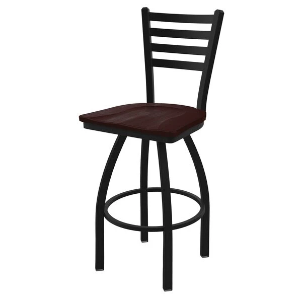 Customize your very own bar stool with the help of the Holland Bar Stool Co. This Black Wrinkle Jackie swivel bar stool has a contemporary design and provides superb back support for exceptional comfort. The frame is made from commercial quality 16 gauge, 1 1/4 inch tube steel with solid mig welded joints to guarantee strength and durability. The powder coated finish resists chips and scratches and ensures a long-lasting, rich appearance. The wood seats are 1 1/4 inch solid hardwood (oak or maple) and are dished for amazing posterior comfort, making sitting for minutes or hours a pleasure. The cushion seats are of the highest quality as well, utilizing a breathable, commercial grade vinyl or fabric. At the heart of the cushion is 2 1/2 inches of highly-dense foam that provides maximum support and will not breakdown in a couple years. You won't find a higher quality stool on the market. If you are going to finish your bar or dining area – do it right, with a stool from the Holland Bar Stool Co.