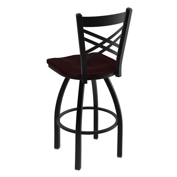 Customize your very own bar stool with the help of the Holland Bar Stool Co. This Black Wrinkle Catalina swivel bar stool has a contemporary design and provides superb back support for exceptional comfort. The frame is made from commercial quality 16 gauge, 1 1/4 inch tube steel with solid mig welded joints to guarantee strength and durability. The powder coated finish resists chips and scratches and ensures a long-lasting, rich appearance. The wood seats are 1 1/4 inch solid hardwood (oak or maple) and are dished for amazing posterior comfort, making sitting for minutes or hours a pleasure. The cushion seats are of the highest quality as well, utilizing a breathable, commercial grade vinyl or fabric. At the heart of the cushion is 2 1/2 inches of highly-dense foam that provides maximum support and will not breakdown in a couple years. You won't find a higher quality stool on the market. If you are going to finish your bar or dining area – do it right, with a stool from the Holland Bar Stool Co.