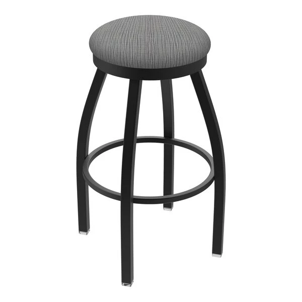 Customize your very own bar stool with the help of the Holland Bar Stool Co. This Black Wrinkle Misha swivel bar stool has a contemporary design. The seat ring conceals the swivel for a clean look. The frame is made from commercial quality 16 gauge, 1 3/4 inch tube steel with solid mig welded joints to guarantee strength and durability. The powder coated finish resists chips and scratches and ensures a long-lasting, rich appearance. The wood seats are 1 3/4 inch solid hardwood (oak or maple) and are dished for amazing posterior comfort, making sitting for minutes or hours a pleasure. The cushion seats are of the highest quality as well, utilizing a breathable, commercial grade vinyl or fabric. At the heart of the cushion is 2 1/2 inches of highly-dense foam that provides maximum support and will not breakdown in a couple years. You won't find a higher quality stool on the market. If you are going to finish your bar or dining area – do it right, with a stool from the Holland Bar Stool Co.
