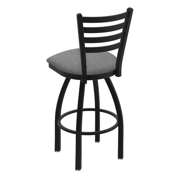 Customize your very own bar stool with the help of the Holland Bar Stool Co. This Black Wrinkle Jackie swivel bar stool has a contemporary design and provides superb back support for exceptional comfort. The frame is made from commercial quality 16 gauge, 1 1/4 inch tube steel with solid mig welded joints to guarantee strength and durability. The powder coated finish resists chips and scratches and ensures a long-lasting, rich appearance. The wood seats are 1 1/4 inch solid hardwood (oak or maple) and are dished for amazing posterior comfort, making sitting for minutes or hours a pleasure. The cushion seats are of the highest quality as well, utilizing a breathable, commercial grade vinyl or fabric. At the heart of the cushion is 2 1/2 inches of highly-dense foam that provides maximum support and will not breakdown in a couple years. You won't find a higher quality stool on the market. If you are going to finish your bar or dining area – do it right, with a stool from the Holland Bar Stool Co.