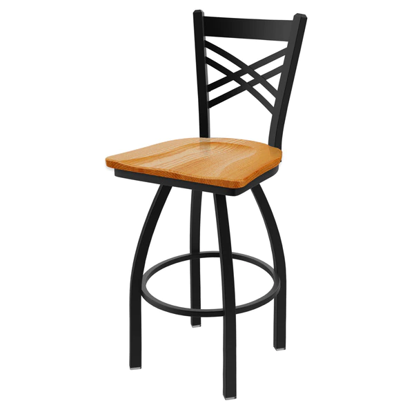 Customize your very own bar stool with the help of the Holland Bar Stool Co. This Black Wrinkle Catalina swivel bar stool has a contemporary design and provides superb back support for exceptional comfort. The frame is made from commercial quality 16 gauge, 1 1/4 inch tube steel with solid mig welded joints to guarantee strength and durability. The powder coated finish resists chips and scratches and ensures a long-lasting, rich appearance. The wood seats are 1 1/4 inch solid hardwood (oak or maple) and are dished for amazing posterior comfort, making sitting for minutes or hours a pleasure. The cushion seats are of the highest quality as well, utilizing a breathable, commercial grade vinyl or fabric. At the heart of the cushion is 2 1/2 inches of highly-dense foam that provides maximum support and will not breakdown in a couple years. You won't find a higher quality stool on the market. If you are going to finish your bar or dining area – do it right, with a stool from the Holland Bar Stool Co.