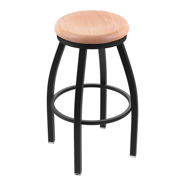 Customize your very own bar stool with the help of the Holland Bar Stool Co. This Black Wrinkle Misha swivel bar stool has a contemporary design. The seat ring conceals the swivel for a clean look. The frame is made from commercial quality 16 gauge, 1 3/4 inch tube steel with solid mig welded joints to guarantee strength and durability. The powder coated finish resists chips and scratches and ensures a long-lasting, rich appearance. The wood seats are 1 3/4 inch solid hardwood (oak or maple) and are dished for amazing posterior comfort, making sitting for minutes or hours a pleasure. The cushion seats are of the highest quality as well, utilizing a breathable, commercial grade vinyl or fabric. At the heart of the cushion is 2 1/2 inches of highly-dense foam that provides maximum support and will not breakdown in a couple years. You won't find a higher quality stool on the market. If you are going to finish your bar or dining area – do it right, with a stool from the Holland Bar Stool Co.
