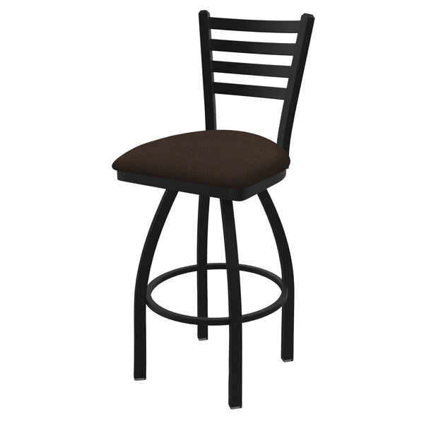 Customize your very own bar stool with the help of the Holland Bar Stool Co. This Black Wrinkle Jackie swivel bar stool has a contemporary design and provides superb back support for exceptional comfort. The frame is made from commercial quality 16 gauge, 1 1/4 inch tube steel with solid mig welded joints to guarantee strength and durability. The powder coated finish resists chips and scratches and ensures a long-lasting, rich appearance. The wood seats are 1 1/4 inch solid hardwood (oak or maple) and are dished for amazing posterior comfort, making sitting for minutes or hours a pleasure. The cushion seats are of the highest quality as well, utilizing a breathable, commercial grade vinyl or fabric. At the heart of the cushion is 2 1/2 inches of highly-dense foam that provides maximum support and will not breakdown in a couple years. You won't find a higher quality stool on the market. If you are going to finish your bar or dining area – do it right, with a stool from the Holland Bar Stool Co.