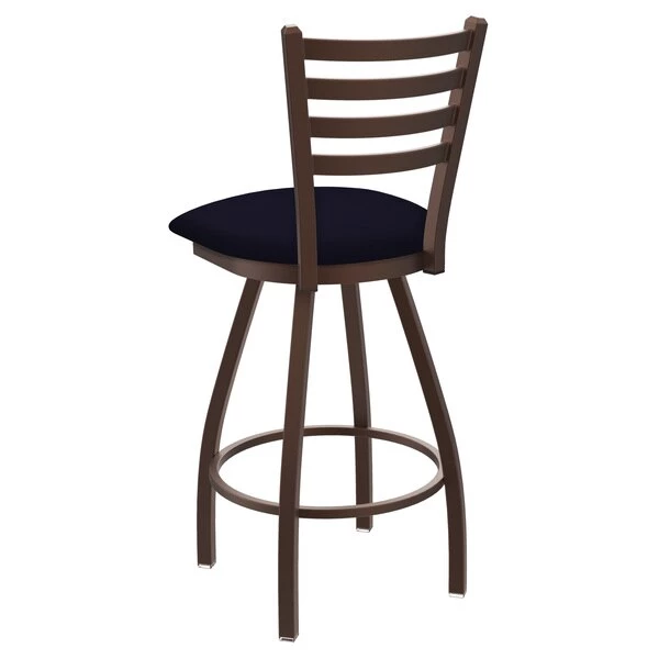This Bronze XL Jackie swivel bar stool has a contemporary design and provides superb back support for exceptional comfort. The XL stool line from Holland Bar Stool features a larger base providing superior stability and the seat is 2" wider and 1" deeper than standard seats.The frame is made from commercial quality 16 gauge, 1 1/4 inch tube steel with solid mig welded joints to guarantee strength and durability. The powder coated finish resists chips and scratches and ensures a long-lasting, rich appearance. The wood seats are 1 1/4 inch solid hardwood (oak or maple) and are dished for amazing posterior comfort, making sitting for minutes or hours a pleasure. The cushion seats are of the highest quality as well, utilizing a breathable, commercial grade vinyl or fabric. At the heart of the cushion is 2 1/2 inches of highly-dense foam that provides maximum support and will not breakdown in a couple years. You won't find a higher quality stool on the market. If you are going to finish your bar or dining area – do it right, with a stool from the Holland Bar Stool Co.