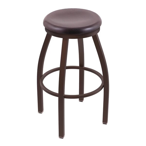Customize your very own bar stool with the help of the Holland Bar Stool Co. This Bronze Misha swivel bar stool has a contemporary design. The seat ring conceals the swivel for a clean look. The frame is made from commercial quality 16 gauge, 1 3/4 inch tube steel with solid mig welded joints to guarantee strength and durability. The powder coated finish resists chips and scratches and ensures a long-lasting, rich appearance. The wood seats are 1 3/4 inch solid hardwood (oak or maple) and are dished for amazing posterior comfort, making sitting for minutes or hours a pleasure. The cushion seats are of the highest quality as well, utilizing a breathable, commercial grade vinyl or fabric. At the heart of the cushion is 2 1/2 inches of highly-dense foam that provides maximum support and will not breakdown in a couple years. You won't find a higher quality stool on the market. If you are going to finish your bar or dining area – do it right, with a stool from the Holland Bar Stool Co.