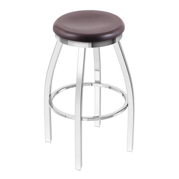 Customize your very own bar stool with the help of the Holland Bar Stool Co. This Chrome Misha swivel bar stool has a contemporary design. The seat ring conceals the swivel for a clean look. The frame is made from commercial quality 16 gauge, 1 3/4 inch tube steel with solid mig welded joints to guarantee strength and durability. The chrome finish resists chips and scratches and ensures a long-lasting, rich appearance. The wood seats are 1 3/4 inch solid hardwood (oak or maple) and are dished for amazing posterior comfort, making sitting for minutes or hours a pleasure. The cushion seats are of the highest quality as well, utilizing a breathable, commercial grade vinyl or fabric. At the heart of the cushion is 2 1/2 inches of highly-dense foam that provides maximum support and will not breakdown in a couple years. You won't find a higher quality stool on the market. If you are going to finish your bar or dining area – do it right, with a stool from the Holland Bar Stool Co.