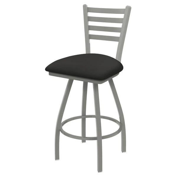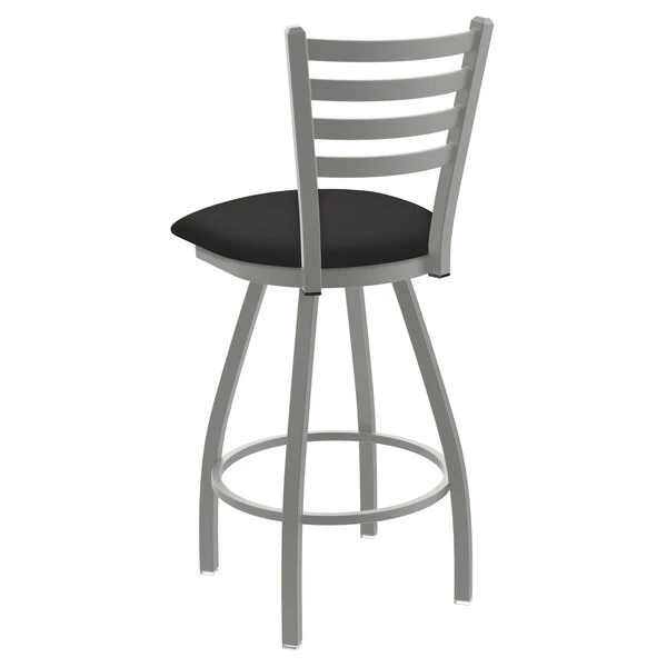 This Anodized Nickel XL Jackie swivel bar stool has a contemporary design and provides superb back support for exceptional comfort. The XL stool line from Holland Bar Stool features a larger base providing superior stability and the seat is 2" wider and 1" deeper than standard seats.The frame is made from commercial quality 16 gauge, 1 1/4 inch tube steel with solid mig welded joints to guarantee strength and durability. The powder coated finish resists chips and scratches and ensures a long-lasting, rich appearance. The wood seats are 1 1/4 inch solid hardwood (oak or maple) and are dished for amazing posterior comfort, making sitting for minutes or hours a pleasure. The cushion seats are of the highest quality as well, utilizing a breathable, commercial grade vinyl or fabric. At the heart of the cushion is 2 1/2 inches of highly-dense foam that provides maximum support and will not breakdown in a couple years. You won't find a higher quality stool on the market. If you are going to finish your bar or dining area – do it right, with a stool from the Holland Bar Stool Co.