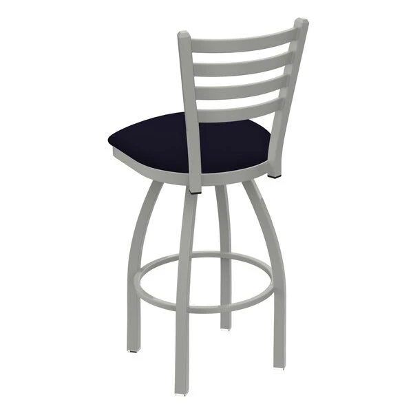 Customize your very own bar stool with the help of the Holland Bar Stool Co. This Anodized Nickel Jackie swivel bar stool has a contemporary design and provides superb back support for exceptional comfort. The frame is made from commercial quality 16 gauge, 1 1/4 inch tube steel with solid mig welded joints to guarantee strength and durability. The powder coated finish resists chips and scratches and ensures a long-lasting, rich appearance. The wood seats are 1 1/4 inch solid hardwood (oak or maple) and are dished for amazing posterior comfort, making sitting for minutes or hours a pleasure. The cushion seats are of the highest quality as well, utilizing a breathable, commercial grade vinyl or fabric. At the heart of the cushion is 2 1/2 inches of highly-dense foam that provides maximum support and will not breakdown in a couple years. You won't find a higher quality stool on the market. If you are going to finish your bar or dining area – do it right, with a stool from the Holland Bar Stool Co.