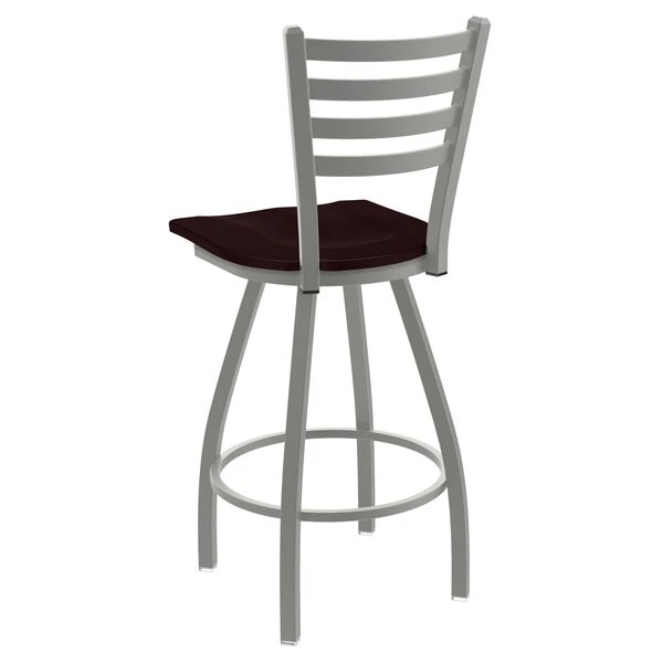 This Anodized Nickel XL Jackie swivel bar stool has a contemporary design and provides superb back support for exceptional comfort. The XL stool line from Holland Bar Stool features a larger base providing superior stability and the seat is 2" wider and 1" deeper than standard seats.The frame is made from commercial quality 16 gauge, 1 1/4 inch tube steel with solid mig welded joints to guarantee strength and durability. The powder coated finish resists chips and scratches and ensures a long-lasting, rich appearance. The wood seats are 1 1/4 inch solid hardwood (oak or maple) and are dished for amazing posterior comfort, making sitting for minutes or hours a pleasure. The cushion seats are of the highest quality as well, utilizing a breathable, commercial grade vinyl or fabric. At the heart of the cushion is 2 1/2 inches of highly-dense foam that provides maximum support and will not breakdown in a couple years. You won't find a higher quality stool on the market. If you are going to finish your bar or dining area – do it right, with a stool from the Holland Bar Stool Co.