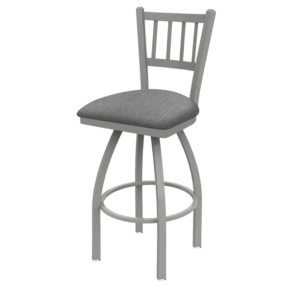 Customize your very own bar stool with the help of the Holland Bar Stool Co. This Anodized Nickel Contessa swivel bar stool has a contemporary design and provides superb back support for exceptional comfort. The frame is made from commercial quality 16 gauge, 1 1/4 inch tube steel with solid mig welded joints to guarantee strength and durability. The powder coated finish resists chips and scratches and ensures a long-lasting, rich appearance. The wood seats are 1 1/4 inch solid hardwood (oak or maple) and are dished for amazing posterior comfort, making sitting for minutes or hours a pleasure. The cushion seats are of the highest quality as well, utilizing a breathable, commercial grade vinyl or fabric. At the heart of the cushion is 2 1/2 inches of highly-dense foam that provides maximum support and will not breakdown in a couple years. You won't find a higher quality stool on the market. If you are going to finish your bar or dining area – do it right, with a stool from the Holland Bar Stool Co.