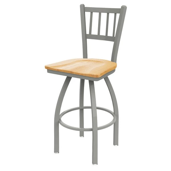 Customize your very own bar stool with the help of the Holland Bar Stool Co. This Anodized Nickel Contessa swivel bar stool has a contemporary design and provides superb back support for exceptional comfort. The frame is made from commercial quality 16 gauge, 1 1/4 inch tube steel with solid mig welded joints to guarantee strength and durability. The powder coated finish resists chips and scratches and ensures a long-lasting, rich appearance. The wood seats are 1 1/4 inch solid hardwood (oak or maple) and are dished for amazing posterior comfort, making sitting for minutes or hours a pleasure. The cushion seats are of the highest quality as well, utilizing a breathable, commercial grade vinyl or fabric. At the heart of the cushion is 2 1/2 inches of highly-dense foam that provides maximum support and will not breakdown in a couple years. You won't find a higher quality stool on the market. If you are going to finish your bar or dining area – do it right, with a stool from the Holland Bar Stool Co.