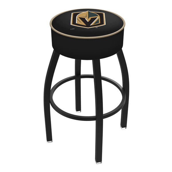 Made for the ultimate sports fan, you will be proud to show where your loyalty lies with this impressive Officially Licensed stool from the Holland Bar Stool Co. This contemporary L8B1 stool features a single-ring black wrinkle base with a 5" scooped cushion that conceals the swivel for an exceptionally clean look. A state of the art print process is used in applying specially formulated UV vinyl ink in numerous stages to produce a sharp, crisp, clear image to ensure a perfect reproduction of the logo. You won't find a higher quality logo stool on the market. The frame is made from commercial quality 16 gauge, 1 1/4 inch tube steel with solid mig welded joints to guarantee strength and durability. The powder coated finish resists chips and scratches and ensures a long-lasting, rich appearance. The cushion seats are of the highest quality as well, utilizing a breathable, commercial grade vinyl. At the heart of the cushion is highly-dense foam that provides maximum support and will not breakdown in a couple years. If you're going to finish your bar, game room, or man cave do it right- with a logo stool made by the Holland Bar Stool Co.