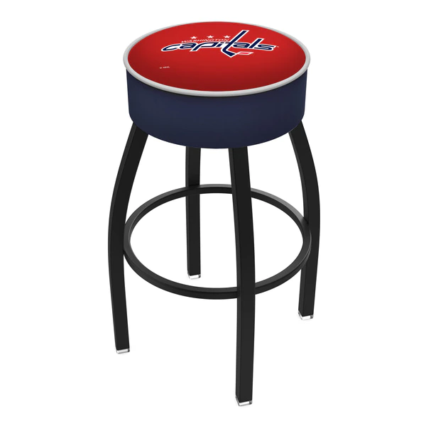Made for the ultimate sports fan, you will be proud to show where your loyalty lies with this impressive Officially Licensed stool from the Holland Bar Stool Co. This contemporary L8B1 stool features a single-ring black wrinkle base with a 5" scooped cushion that conceals the swivel for an exceptionally clean look. A state of the art print process is used in applying specially formulated UV vinyl ink in numerous stages to produce a sharp, crisp, clear image to ensure a perfect reproduction of the logo. You won't find a higher quality logo stool on the market. The frame is made from commercial quality 16 gauge, 1 1/4 inch tube steel with solid mig welded joints to guarantee strength and durability. The powder coated finish resists chips and scratches and ensures a long-lasting, rich appearance. The cushion seats are of the highest quality as well, utilizing a breathable, commercial grade vinyl. At the heart of the cushion is highly-dense foam that provides maximum support and will not breakdown in a couple years. If you're going to finish your bar, game room, or man cave do it right- with a logo stool made by the Holland Bar Stool Co.