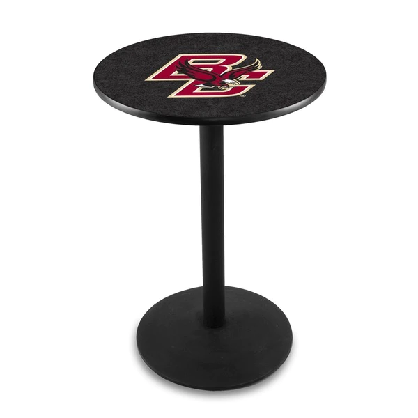 Made for the ultimate sports fan, you will be proud to show where your loyalty lies with this impressive Officially Licensed pub table from the Holland Bar Stool Co. This L214 table with round base is sure to add a touch of class to your setting. You can't find a higher quality logo table on the market. The sublimated, full color, scratch resistant, laminate top it attached with a VOC free, environmentally friendly, hot-melt adhesive. Table bases are commercial quality with a cast iron base plate, steel column, and spider. The base is powder coated black wrinkle to ensure a rich, sleek, long lasting finish. The bases are easy to assemble and with locking tabs, top and bottom, are strong and steady. Tables have adjustable feet to accomodate any floor surface. If you're going to finish your bar, game room, or man cave – do it right with a table from the Holland Bar Stool Co.
