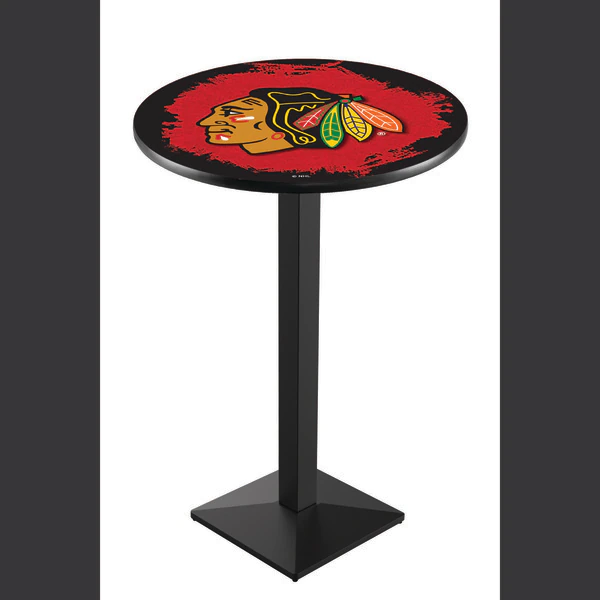 Made for the ultimate sports fan, you will be proud to show where your loyalty lies with this impressive Officially Licensed pub table from the Holland Bar Stool Co. This L217 table with square base is sure to add a touch of class to your setting. You can't find a higher quality logo table on the market. The sublimated, full color, scratch resistant, laminate top it attached with a VOC free, environmentally friendly, hot-melt adhesive. Table bases are commercial quality with a cast iron base plate, steel column, and spider. The base is powder coated black wrinkle to ensure a rich, sleek, long lasting finish. The bases are easy to assemble and with locking tabs, top and bottom, are strong and steady. Tables have adjustable feet to accomodate any floor surface. If you're going to finish your bar, game room, or man cave – do it right with a table from the Holland Bar Stool Co.