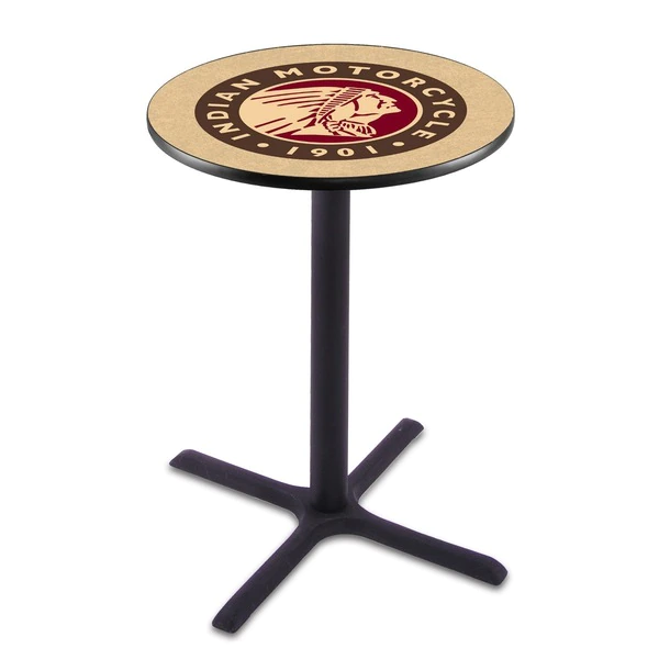 Made for the ultimate Indian Motorcycle enthusiast, you will be proud to show where your loyalty lies with this impressive Officially Licensed pub table from the Holland Bar Stool Co. This L211 table with cross base is sure to add a touch of class to your setting. You can't find a higher quality logo table on the market. The sublimated, full color, scratch resistant, laminate top it attached with a VOC free, environmentally friendly, hot-melt adhesive. Table bases are commercial quality with a cast iron base plate, steel column, and spider. The base is powder coated black wrinkle to ensure a rich, sleek, long lasting finish. The bases are easy to assemble and with locking tabs, top and bottom, are strong and steady. Tables have adjustable feet to accomodate any floor surface. If you're going to finish your bar, game room, or man cave – do it right with a table from the Holland Bar Stool Co.