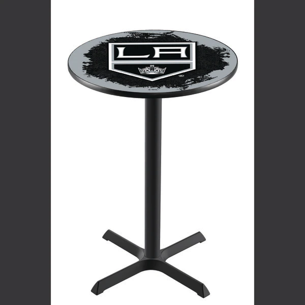 Made for the ultimate sports fan, you will be proud to show where your loyalty lies with this impressive Officially Licensed pub table from the Holland Bar Stool Co. This L211 table with cross base is sure to add a touch of class to your setting. You can't find a higher quality logo table on the market. The sublimated, full color, scratch resistant, laminate top it attached with a VOC free, environmentally friendly, hot-melt adhesive. Table bases are commercial quality with a cast iron base plate, steel column, and spider. The base is powder coated black wrinkle to ensure a rich, sleek, long lasting finish. The bases are easy to assemble and with locking tabs, top and bottom, are strong and steady. Tables have adjustable feet to accomodate any floor surface. If you're going to finish your bar, game room, or man cave – do it right with a table from the Holland Bar Stool Co.