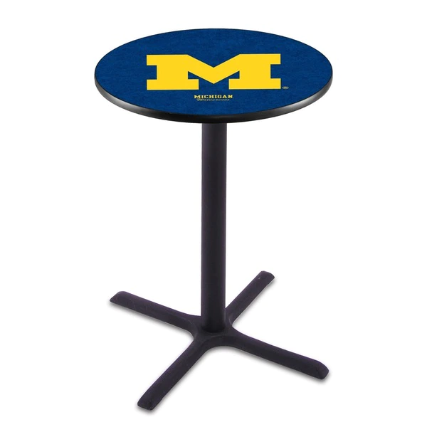 Made for the ultimate sports fan, you will be proud to show where your loyalty lies with this impressive Officially Licensed pub table from the Holland Bar Stool Co. This L211 table with cross base is sure to add a touch of class to your setting. You can't find a higher quality logo table on the market. The sublimated, full color, scratch resistant, laminate top it attached with a VOC free, environmentally friendly, hot-melt adhesive. Table bases are commercial quality with a cast iron base plate, steel column, and spider. The base is powder coated black wrinkle to ensure a rich, sleek, long lasting finish. The bases are easy to assemble and with locking tabs, top and bottom, are strong and steady. Tables have adjustable feet to accomodate any floor surface. If you're going to finish your bar, game room, or man cave – do it right with a table from the Holland Bar Stool Co.