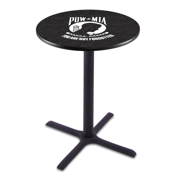 Show your support for our troops (past and present) with this impressive Officially Licensed pub table from the Holland Bar Stool Co. This L211 table with cross base is sure to add a touch of class to your setting. You can't find a higher quality logo table on the market. The sublimated, full color, scratch resistant, laminate top it attached with a VOC free, environmentally friendly, hot-melt adhesive. Table bases are commercial quality with a cast iron base plate, steel column, and spider. The base is powder coated black wrinkle to ensure a rich, sleek, long lasting finish. The bases are easy to assemble and with locking tabs, top and bottom, are strong and steady. Tables have adjustable feet to accomodate any floor surface. If you're going to finish your bar, game room, or man cave – do it right with a table from the Holland Bar Stool Co.