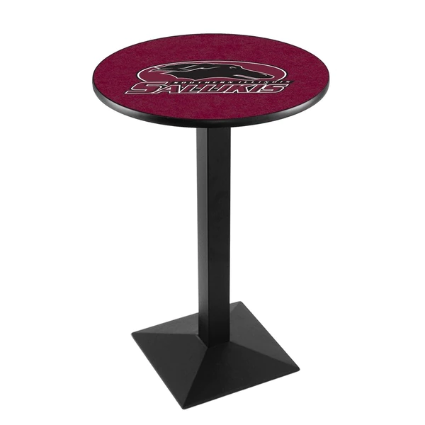 Made for the ultimate sports fan, you will be proud to show where your loyalty lies with this impressive Officially Licensed pub table from the Holland Bar Stool Co. This L217 table with square base is sure to add a touch of class to your setting. You can't find a higher quality logo table on the market. The sublimated, full color, scratch resistant, laminate top it attached with a VOC free, environmentally friendly, hot-melt adhesive. Table bases are commercial quality with a cast iron base plate, steel column, and spider. The base is powder coated black wrinkle to ensure a rich, sleek, long lasting finish. The bases are easy to assemble and with locking tabs, top and bottom, are strong and steady. Tables have adjustable feet to accomodate any floor surface. If you're going to finish your bar, game room, or man cave – do it right with a table from the Holland Bar Stool Co.