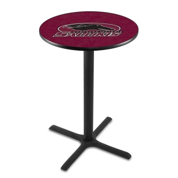 Made for the ultimate sports fan, you will be proud to show where your loyalty lies with this impressive Officially Licensed pub table from the Holland Bar Stool Co. This L211 table with cross base is sure to add a touch of class to your setting. You can't find a higher quality logo table on the market. The sublimated, full color, scratch resistant, laminate top it attached with a VOC free, environmentally friendly, hot-melt adhesive. Table bases are commercial quality with a cast iron base plate, steel column, and spider. The base is powder coated black wrinkle to ensure a rich, sleek, long lasting finish. The bases are easy to assemble and with locking tabs, top and bottom, are strong and steady. Tables have adjustable feet to accomodate any floor surface. If you're going to finish your bar, game room, or man cave – do it right with a table from the Holland Bar Stool Co.