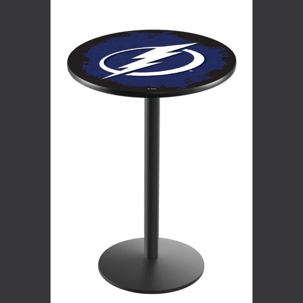 Made for the ultimate sports fan, you will be proud to show where your loyalty lies with this impressive Officially Licensed pub table from the Holland Bar Stool Co. This L214 table with round base is sure to add a touch of class to your setting. You can't find a higher quality logo table on the market. The sublimated, full color, scratch resistant, laminate top it attached with a VOC free, environmentally friendly, hot-melt adhesive. Table bases are commercial quality with a cast iron base plate, steel column, and spider. The base is powder coated black wrinkle to ensure a rich, sleek, long lasting finish. The bases are easy to assemble and with locking tabs, top and bottom, are strong and steady. Tables have adjustable feet to accomodate any floor surface. If you're going to finish your bar, game room, or man cave – do it right with a table from the Holland Bar Stool Co.