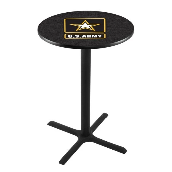 Show your support for our troops (past and present) with this impressive Officially Licensed pub table from the Holland Bar Stool Co. This L211 table with cross base is sure to add a touch of class to your setting. You can't find a higher quality logo table on the market. The sublimated, full color, scratch resistant, laminate top it attached with a VOC free, environmentally friendly, hot-melt adhesive. Table bases are commercial quality with a cast iron base plate, steel column, and spider. The base is powder coated black wrinkle to ensure a rich, sleek, long lasting finish. The bases are easy to assemble and with locking tabs, top and bottom, are strong and steady. Tables have adjustable feet to accomodate any floor surface. If you're going to finish your bar, game room, or man cave – do it right with a table from the Holland Bar Stool Co.