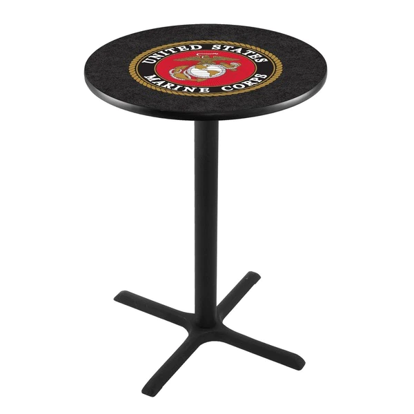 Show your support for our troops (past and present) with this impressive Officially Licensed pub table from the Holland Bar Stool Co. This L211 table with cross base is sure to add a touch of class to your setting. You can't find a higher quality logo table on the market. The sublimated, full color, scratch resistant, laminate top it attached with a VOC free, environmentally friendly, hot-melt adhesive. Table bases are commercial quality with a cast iron base plate, steel column, and spider. The base is powder coated black wrinkle to ensure a rich, sleek, long lasting finish. The bases are easy to assemble and with locking tabs, top and bottom, are strong and steady. Tables have adjustable feet to accomodate any floor surface. If you're going to finish your bar, game room, or man cave – do it right with a table from the Holland Bar Stool Co.
