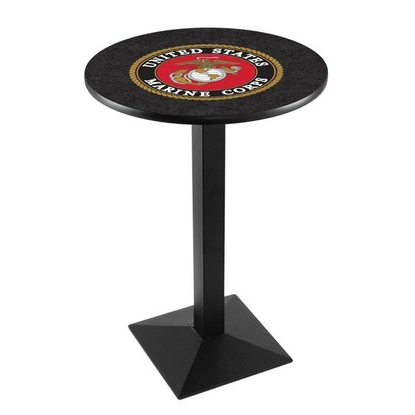 Show your support for our troops (past and current) with this impressive Officially Licensed pub table from the Holland Bar Stool Co. This L217 table with square base is sure to add a touch of class to your setting. You can't find a higher quality logo table on the market. The sublimated, full color, scratch resistant, laminate top it attached with a VOC free, environmentally friendly, hot-melt adhesive. Table bases are commercial quality with a cast iron base plate, steel column, and spider. The base is powder coated black wrinkle to ensure a rich, sleek, long lasting finish. The bases are easy to assemble and with locking tabs, top and bottom, are strong and steady. Tables have adjustable feet to accomodate any floor surface. If you're going to finish your bar, game room, or man cave – do it right with a table from the Holland Bar Stool Co.