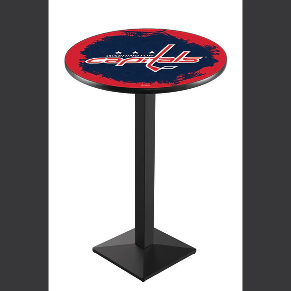 Made for the ultimate sports fan, you will be proud to show where your loyalty lies with this impressive Officially Licensed pub table from the Holland Bar Stool Co. This L217 table with square base is sure to add a touch of class to your setting. You can't find a higher quality logo table on the market. The sublimated, full color, scratch resistant, laminate top it attached with a VOC free, environmentally friendly, hot-melt adhesive. Table bases are commercial quality with a cast iron base plate, steel column, and spider. The base is powder coated black wrinkle to ensure a rich, sleek, long lasting finish. The bases are easy to assemble and with locking tabs, top and bottom, are strong and steady. Tables have adjustable feet to accomodate any floor surface. If you're going to finish your bar, game room, or man cave – do it right with a table from the Holland Bar Stool Co.