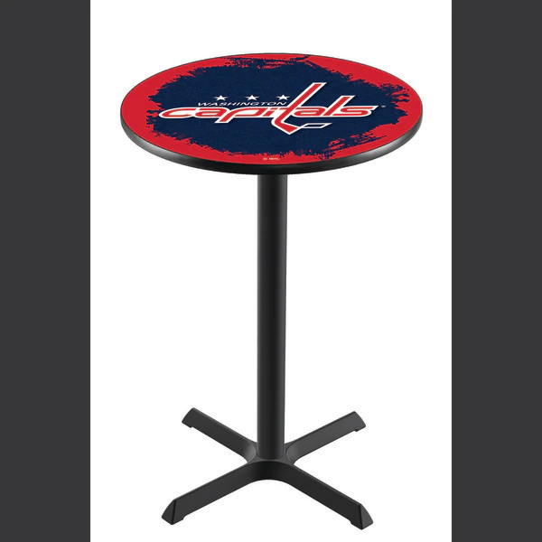 Made for the ultimate sports fan, you will be proud to show where your loyalty lies with this impressive Officially Licensed pub table from the Holland Bar Stool Co. This L211 table with cross base is sure to add a touch of class to your setting. You can't find a higher quality logo table on the market. The sublimated, full color, scratch resistant, laminate top it attached with a VOC free, environmentally friendly, hot-melt adhesive. Table bases are commercial quality with a cast iron base plate, steel column, and spider. The base is powder coated black wrinkle to ensure a rich, sleek, long lasting finish. The bases are easy to assemble and with locking tabs, top and bottom, are strong and steady. Tables have adjustable feet to accomodate any floor surface. If you're going to finish your bar, game room, or man cave – do it right with a table from the Holland Bar Stool Co.