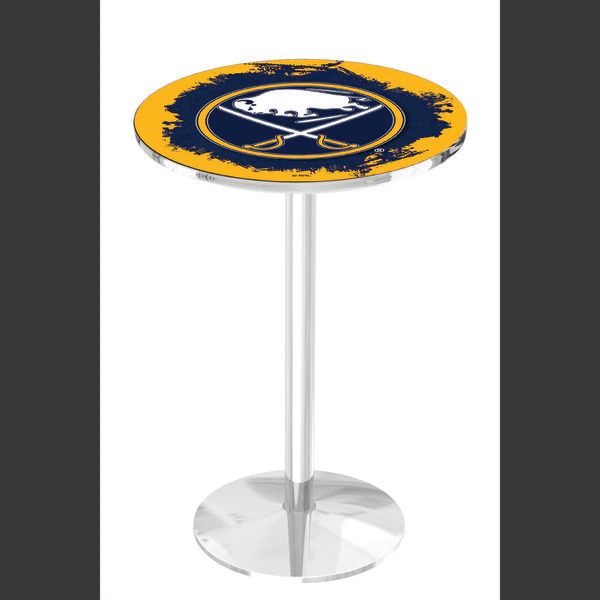 Made for the ultimate sports fan, you will be proud to show where your loyalty lies with this impressive Officially Licensed pub table from the Holland Bar Stool Co. This L214 table with round base is sure to add a touch of class to your setting. You can't find a higher quality logo table on the market. The sublimated, full color, scratch resistant, laminate top it attached with a VOC free, environmentally friendly, hot-melt adhesive. Table bases are commercial quality with a cast iron base plate, steel column, and spider. The base is triple chrome plated to ensure a rich, sleek, long lasting finish. The bases are easy to assemble and with locking tabs, top and bottom, are strong and steady. Tables have adjustable feet to accomodate any floor surface. If you're going to finish your bar, game room, or man cave – do it right with a table from the Holland Bar Stool Co.