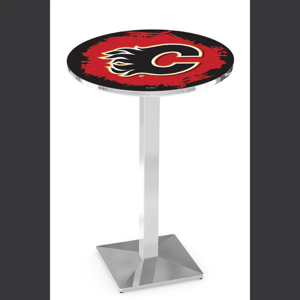 Made for the ultimate sports fan, you will be proud to show where your loyalty lies with this impressive Officially Licensed pub table from the Holland Bar Stool Co. This L217 table with square base is sure to add a touch of class to your setting. You can't find a higher quality logo table on the market. The sublimated, full color, scratch resistant, laminate top it attached with a VOC free, environmentally friendly, hot-melt adhesive. Table bases are commercial quality with a cast iron base plate, steel column, and spider. The base is triple chrome plated to ensure a rich, sleek, long lasting finish. The bases are easy to assemble and with locking tabs, top and bottom, are strong and steady. Tables have adjustable feet to accomodate any floor surface. If you're going to finish your bar, game room, or man cave – do it right with a table from the Holland Bar Stool Co.