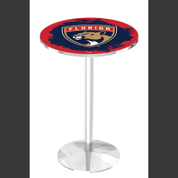 Made for the ultimate sports fan, you will be proud to show where your loyalty lies with this impressive Officially Licensed pub table from the Holland Bar Stool Co. This L214 table with round base is sure to add a touch of class to your setting. You can't find a higher quality logo table on the market. The sublimated, full color, scratch resistant, laminate top it attached with a VOC free, environmentally friendly, hot-melt adhesive. Table bases are commercial quality with a cast iron base plate, steel column, and spider. The base is triple chrome plated to ensure a rich, sleek, long lasting finish. The bases are easy to assemble and with locking tabs, top and bottom, are strong and steady. Tables have adjustable feet to accomodate any floor surface. If you're going to finish your bar, game room, or man cave – do it right with a table from the Holland Bar Stool Co.