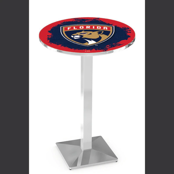 Made for the ultimate sports fan, you will be proud to show where your loyalty lies with this impressive Officially Licensed pub table from the Holland Bar Stool Co. This L217 table with square base is sure to add a touch of class to your setting. You can't find a higher quality logo table on the market. The sublimated, full color, scratch resistant, laminate top it attached with a VOC free, environmentally friendly, hot-melt adhesive. Table bases are commercial quality with a cast iron base plate, steel column, and spider. The base is triple chrome plated to ensure a rich, sleek, long lasting finish. The bases are easy to assemble and with locking tabs, top and bottom, are strong and steady. Tables have adjustable feet to accomodate any floor surface. If you're going to finish your bar, game room, or man cave – do it right with a table from the Holland Bar Stool Co.