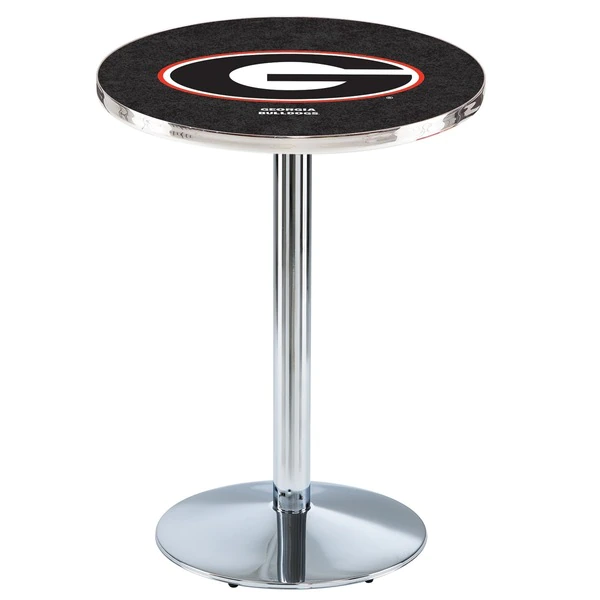 Made for the ultimate sports fan, you will be proud to show where your loyalty lies with this impressive Officially Licensed pub table from the Holland Bar Stool Co. This L214 table with round base is sure to add a touch of class to your setting. You can't find a higher quality logo table on the market. The sublimated, full color, scratch resistant, laminate top it attached with a VOC free, environmentally friendly, hot-melt adhesive. Table bases are commercial quality with a cast iron base plate, steel column, and spider. The base is triple chrome plated to ensure a rich, sleek, long lasting finish. The bases are easy to assemble and with locking tabs, top and bottom, are strong and steady. Tables have adjustable feet to accomodate any floor surface. If you're going to finish your bar, game room, or man cave – do it right with a table from the Holland Bar Stool Co.