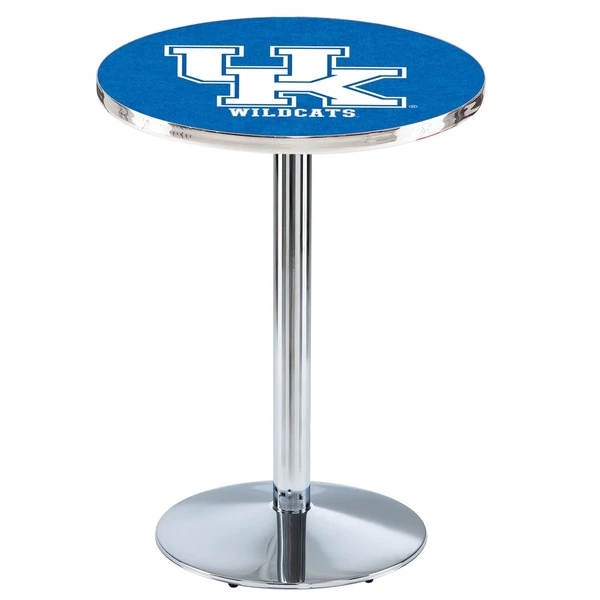 Made for the ultimate sports fan, you will be proud to show where your loyalty lies with this impressive Officially Licensed pub table from the Holland Bar Stool Co. This L214 table with round base is sure to add a touch of class to your setting. You can't find a higher quality logo table on the market. The sublimated, full color, scratch resistant, laminate top it attached with a VOC free, environmentally friendly, hot-melt adhesive. Table bases are commercial quality with a cast iron base plate, steel column, and spider. The base is triple chrome plated to ensure a rich, sleek, long lasting finish. The bases are easy to assemble and with locking tabs, top and bottom, are strong and steady. Tables have adjustable feet to accomodate any floor surface. If you're going to finish your bar, game room, or man cave – do it right with a table from the Holland Bar Stool Co.