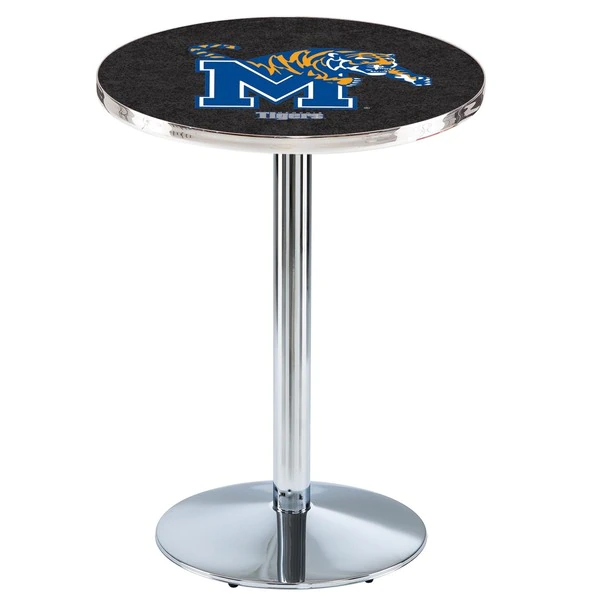 Made for the ultimate sports fan, you will be proud to show where your loyalty lies with this impressive Officially Licensed pub table from the Holland Bar Stool Co. This L214 table with round base is sure to add a touch of class to your setting. You can't find a higher quality logo table on the market. The sublimated, full color, scratch resistant, laminate top it attached with a VOC free, environmentally friendly, hot-melt adhesive. Table bases are commercial quality with a cast iron base plate, steel column, and spider. The base is triple chrome plated to ensure a rich, sleek, long lasting finish. The bases are easy to assemble and with locking tabs, top and bottom, are strong and steady. Tables have adjustable feet to accomodate any floor surface. If you're going to finish your bar, game room, or man cave – do it right with a table from the Holland Bar Stool Co.
