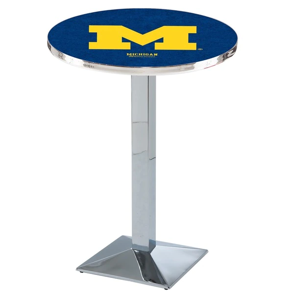 Made for the ultimate sports fan, you will be proud to show where your loyalty lies with this impressive Officially Licensed pub table from the Holland Bar Stool Co. This L217 table with square base is sure to add a touch of class to your setting. You can't find a higher quality logo table on the market. The sublimated, full color, scratch resistant, laminate top it attached with a VOC free, environmentally friendly, hot-melt adhesive. Table bases are commercial quality with a cast iron base plate, steel column, and spider. The base is triple chrome plated to ensure a rich, sleek, long lasting finish. The bases are easy to assemble and with locking tabs, top and bottom, are strong and steady. Tables have adjustable feet to accomodate any floor surface. If you're going to finish your bar, game room, or man cave – do it right with a table from the Holland Bar Stool Co.