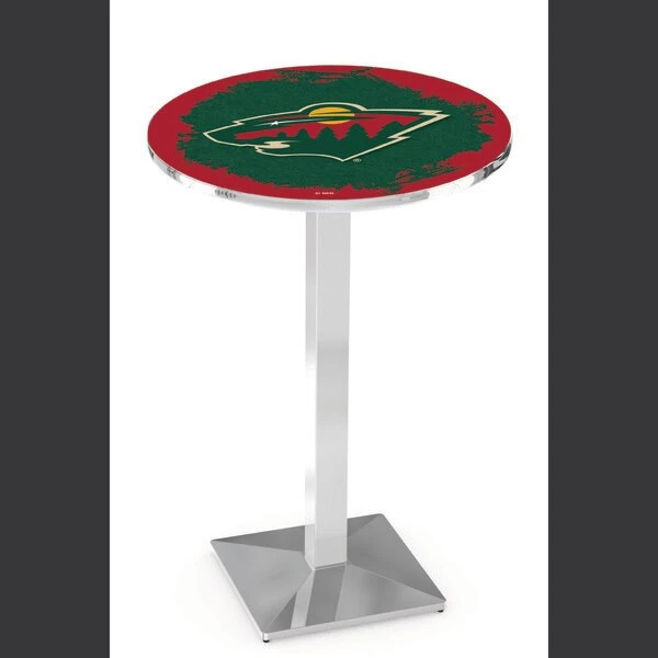 Made for the ultimate sports fan, you will be proud to show where your loyalty lies with this impressive Officially Licensed pub table from the Holland Bar Stool Co. This L217 table with square base is sure to add a touch of class to your setting. You can't find a higher quality logo table on the market. The sublimated, full color, scratch resistant, laminate top it attached with a VOC free, environmentally friendly, hot-melt adhesive. Table bases are commercial quality with a cast iron base plate, steel column, and spider. The base is triple chrome plated to ensure a rich, sleek, long lasting finish. The bases are easy to assemble and with locking tabs, top and bottom, are strong and steady. Tables have adjustable feet to accomodate any floor surface. If you're going to finish your bar, game room, or man cave – do it right with a table from the Holland Bar Stool Co.