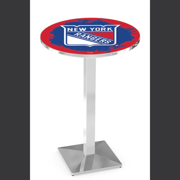 Made for the ultimate sports fan, you will be proud to show where your loyalty lies with this impressive Officially Licensed pub table from the Holland Bar Stool Co. This L217 table with square base is sure to add a touch of class to your setting. You can't find a higher quality logo table on the market. The sublimated, full color, scratch resistant, laminate top it attached with a VOC free, environmentally friendly, hot-melt adhesive. Table bases are commercial quality with a cast iron base plate, steel column, and spider. The base is triple chrome plated to ensure a rich, sleek, long lasting finish. The bases are easy to assemble and with locking tabs, top and bottom, are strong and steady. Tables have adjustable feet to accomodate any floor surface. If you're going to finish your bar, game room, or man cave – do it right with a table from the Holland Bar Stool Co.