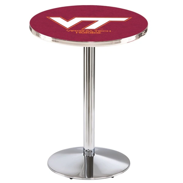Made for the ultimate sports fan, you will be proud to show where your loyalty lies with this impressive Officially Licensed pub table from the Holland Bar Stool Co. This L214 table with round base is sure to add a touch of class to your setting. You can't find a higher quality logo table on the market. The sublimated, full color, scratch resistant, laminate top it attached with a VOC free, environmentally friendly, hot-melt adhesive. Table bases are commercial quality with a cast iron base plate, steel column, and spider. The base is triple chrome plated to ensure a rich, sleek, long lasting finish. The bases are easy to assemble and with locking tabs, top and bottom, are strong and steady. Tables have adjustable feet to accomodate any floor surface. If you're going to finish your bar, game room, or man cave – do it right with a table from the Holland Bar Stool Co.