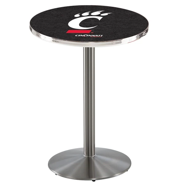 Made for the ultimate sports fan, you will be proud to show where your loyalty lies with this impressive Officially Licensed pub table from the Holland Bar Stool Co. This L214 table with round base is sure to add a touch of class to your setting. You can't find a higher quality logo table on the market. The sublimated, full color, scratch resistant, laminate top it attached with a VOC free, environmentally friendly, hot-melt adhesive. Table bases are commercial quality with a cast iron base plate, steel column, and spider. The base is a 304 Stainless Steel that will look great no matter where you put it. The bases are easy to assemble and with locking tabs, top and bottom, are strong and steady. Tables have adjustable feet to accomodate any floor surface. If you're going to finish your bar, game room, or man cave – do it right with a table from the Holland Bar Stool Co.
