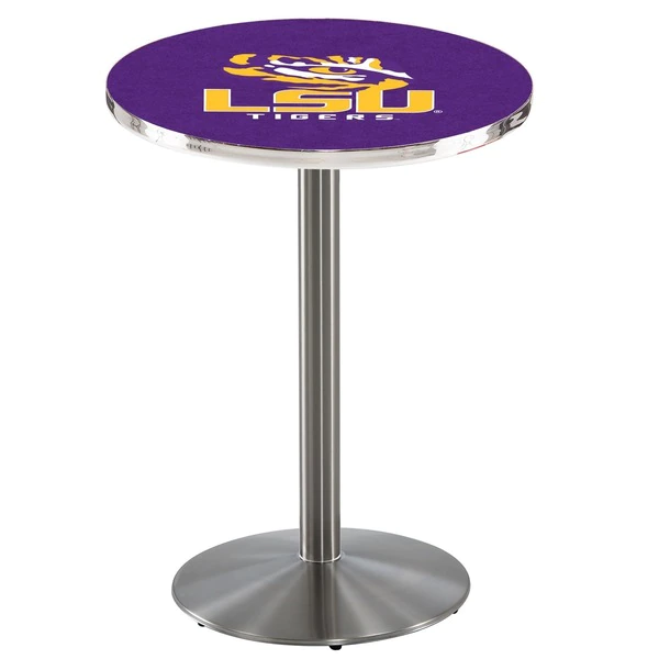 Made for the ultimate sports fan, you will be proud to show where your loyalty lies with this impressive Officially Licensed pub table from the Holland Bar Stool Co. This L214 table with round base is sure to add a touch of class to your setting. You can't find a higher quality logo table on the market. The sublimated, full color, scratch resistant, laminate top it attached with a VOC free, environmentally friendly, hot-melt adhesive. Table bases are commercial quality with a cast iron base plate, steel column, and spider. The base is a 304 Stainless Steel that will look great no matter where you put it. The bases are easy to assemble and with locking tabs, top and bottom, are strong and steady. Tables have adjustable feet to accomodate any floor surface. If you're going to finish your bar, game room, or man cave – do it right with a table from the Holland Bar Stool Co.