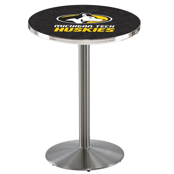 Made for the ultimate sports fan, you will be proud to show where your loyalty lies with this impressive Officially Licensed pub table from the Holland Bar Stool Co. This L214 table with round base is sure to add a touch of class to your setting. You can't find a higher quality logo table on the market. The sublimated, full color, scratch resistant, laminate top it attached with a VOC free, environmentally friendly, hot-melt adhesive. Table bases are commercial quality with a cast iron base plate, steel column, and spider. The base is a 304 Stainless Steel that will look great no matter where you put it. The bases are easy to assemble and with locking tabs, top and bottom, are strong and steady. Tables have adjustable feet to accomodate any floor surface. If you're going to finish your bar, game room, or man cave – do it right with a table from the Holland Bar Stool Co.