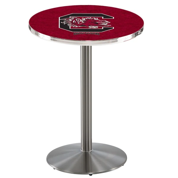Made for the ultimate sports fan, you will be proud to show where your loyalty lies with this impressive Officially Licensed pub table from the Holland Bar Stool Co. This L214 table with round base is sure to add a touch of class to your setting. You can't find a higher quality logo table on the market. The sublimated, full color, scratch resistant, laminate top it attached with a VOC free, environmentally friendly, hot-melt adhesive. Table bases are commercial quality with a cast iron base plate, steel column, and spider. The base is a 304 Stainless Steel that will look great no matter where you put it. The bases are easy to assemble and with locking tabs, top and bottom, are strong and steady. Tables have adjustable feet to accomodate any floor surface. If you're going to finish your bar, game room, or man cave – do it right with a table from the Holland Bar Stool Co.