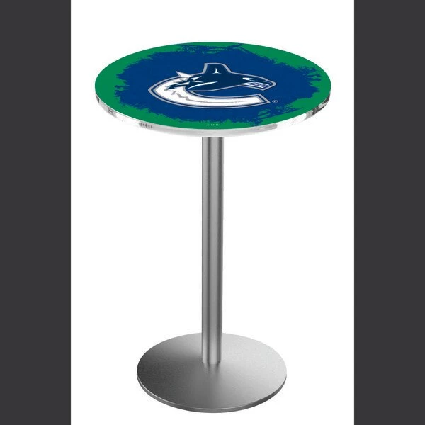 Made for the ultimate sports fan, you will be proud to show where your loyalty lies with this impressive Officially Licensed pub table from the Holland Bar Stool Co. This L214 table with round base is sure to add a touch of class to your setting. You can't find a higher quality logo table on the market. The sublimated, full color, scratch resistant, laminate top it attached with a VOC free, environmentally friendly, hot-melt adhesive. Table bases are commercial quality with a cast iron base plate, steel column, and spider. The base is a 304 Stainless Steel that will look great no matter where you put it. The bases are easy to assemble and with locking tabs, top and bottom, are strong and steady. Tables have adjustable feet to accomodate any floor surface. If you're going to finish your bar, game room, or man cave – do it right with a table from the Holland Bar Stool Co.