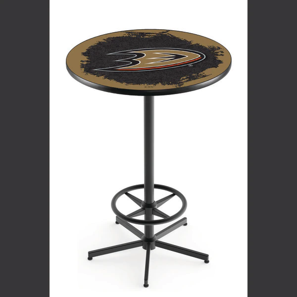 Made for the ultimate sports fan, you will be proud to show where your loyalty lies with this impressive Officially Licensed pub table from the Holland Bar Stool Co. This L216 table with star base and foot ring is sure to add a touch of class to your setting. You can't find a higher quality logo table on the market. The sublimated, full color, scratch resistant, laminate top it attached with a VOC free, environmentally friendly, hot-melt adhesive. The plating grade steel used for the base ensures it will withstand the abuse of the rowdiest of friends for years to come. The base is powder coated black wrinkle to ensure a rich, sleek, long lasting finish. Assembly is easy and quick and the outcome is an acceptionally strong, sturdy table. Adjustable floor glides make for a steady table even on an unlevel floor. If you're going to finish your bar, game room, or man cave – do it right with a table from the Holland Bar Stool Co.