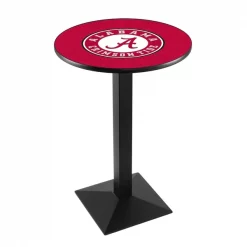 Made for the ultimate sports fan, you will be proud to show where your loyalty lies with this impressive Officially Licensed pub table from the Holland Bar Stool Co. This L217 table with square base is sure to add a touch of class to your setting. You can't find a higher quality logo table on the market. The sublimated, full color, scratch resistant, laminate top it attached with a VOC free, environmentally friendly, hot-melt adhesive. Table bases are commercial quality with a cast iron base plate, steel column, and spider. The base is powder coated black wrinkle to ensure a rich, sleek, long lasting finish. The bases are easy to assemble and with locking tabs, top and bottom, are strong and steady. Tables have adjustable feet to accomodate any floor surface. If you're going to finish your bar, game room, or man cave – do it right with a table from the Holland Bar Stool Co.